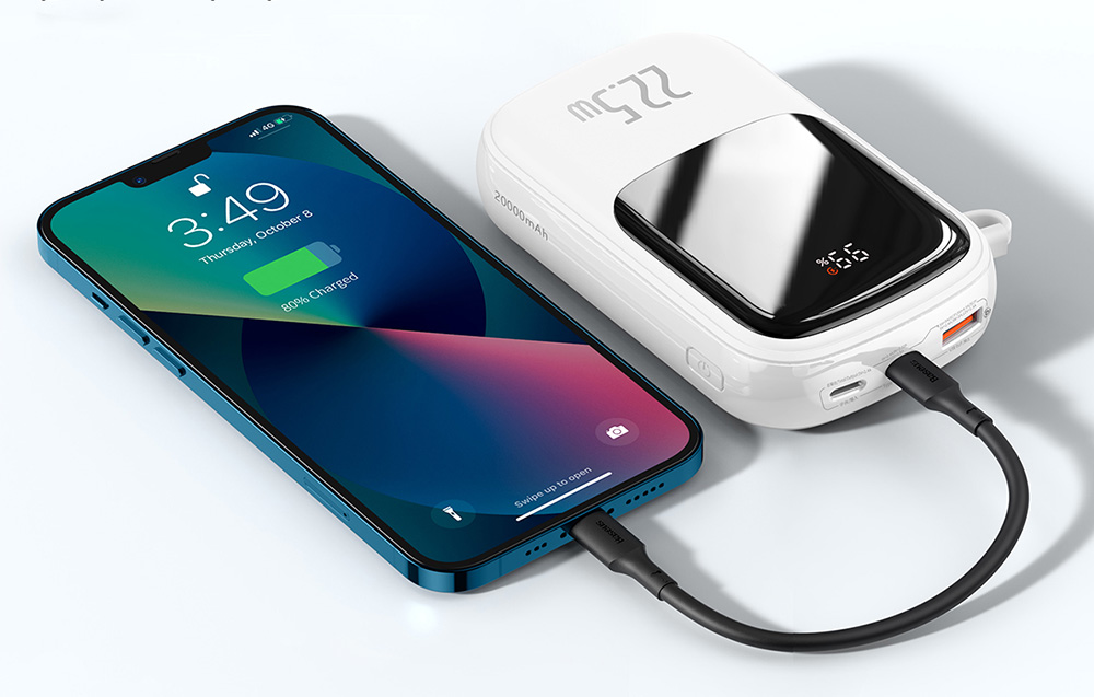 Met de Baseus Qpow Pro powerbank met USB-C kabel kun je tot 3 apparaten tegelijk opladen. De USB-C kabel laadt op met 22.5Watt. Daarnaast heeft de powerbank USB- en USB-C-uitgangen, zodat je de stroom van verschillende apparaten tegelijk kunt vernieuwen. Hij ondersteunt SCP-, FCP-, QC- en PD-protocollen en laadt een Apple 13 in slechts 30 minuten op tot 50%.
