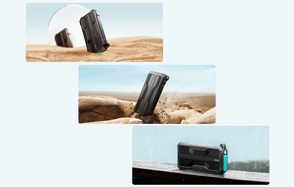 Dankzij de slimme chip is je apparatuur bij elke stap beschermd. Verschillende beveiligingen, zoals bescherming tegen overbelasting, te hoge spanning, piekstromen, kortsluiting, overontlading of extreme temperaturen, garanderen de veiligheid van je apparaten. De powerbank is gemaakt om je op elk avontuur te vergezellen en is daarom niet alleen duurzaam, maar ook bestand tegen stof, schokken en vocht.
