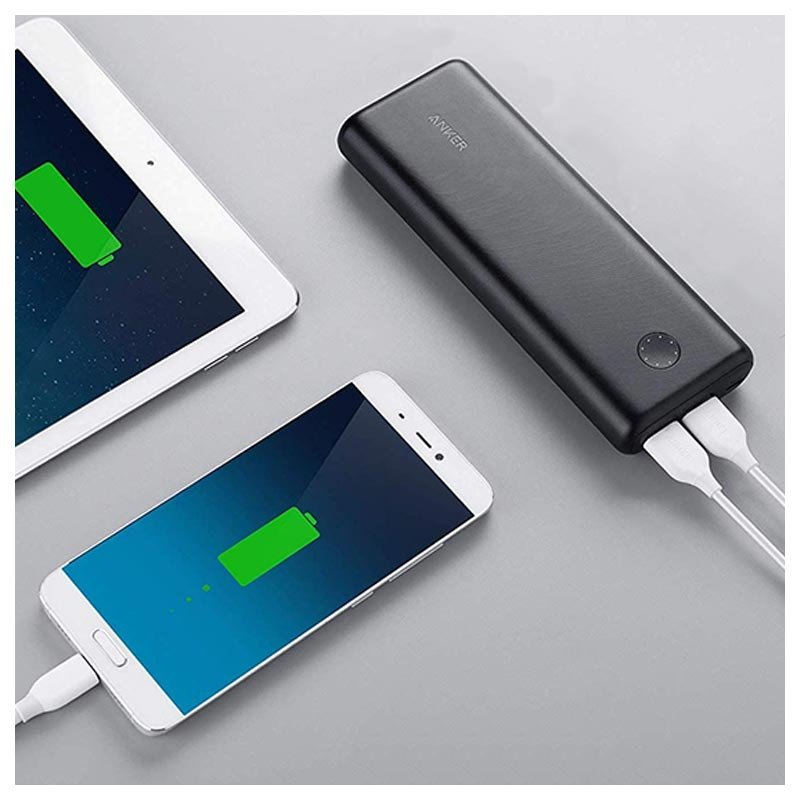 - De capaciteit van 30.000 mAh kan drie apparaten tegelijk opladen.