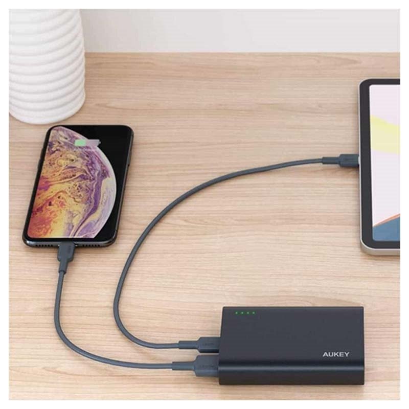 - De mini powerbank wordt geleverd met twee USB- en één USB-C-poorten voor het opladen van verschillende apparaten.