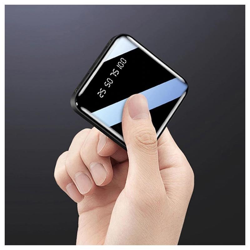 De stijlvolle spiegel afgewerkte Mini fast powerbank is een kleine en compacte krachtpatser voor onderweg. Deze powerbank van zakformaat heeft een batterijcapaciteit van 10.000 mAh om al je apparaten van stroom te voorzien zonder omvangrijk te zijn. Hij weegt slechts 250 gram!