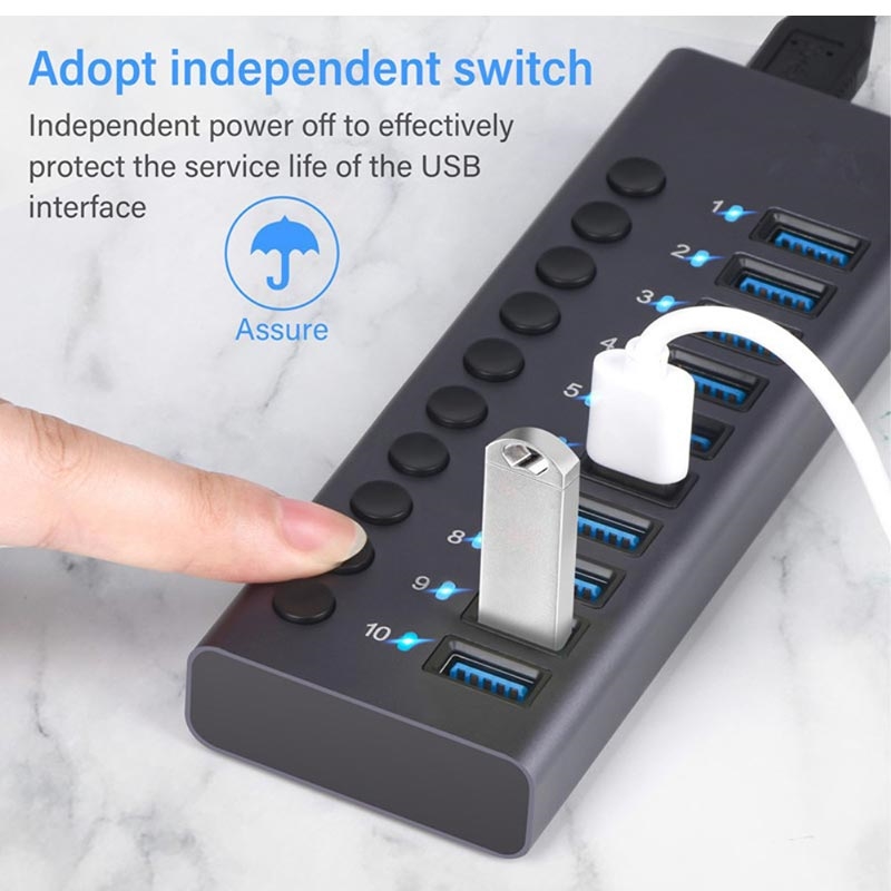 USB 3.0-laadstation Oplader 10-poorts oplader Uitbreiding Power Hub-oplaadstation met onafhankelijke schakelaar Hoge stroom