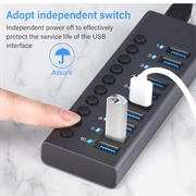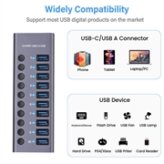 - 10 poorten maken gelijktijdig opladen van meerdere apparaten mogelijk. USB-flashdrive, kaartlezer, externe harde schijf en andere USB-randapparatuur toestaan voor toegang tot of opladen
