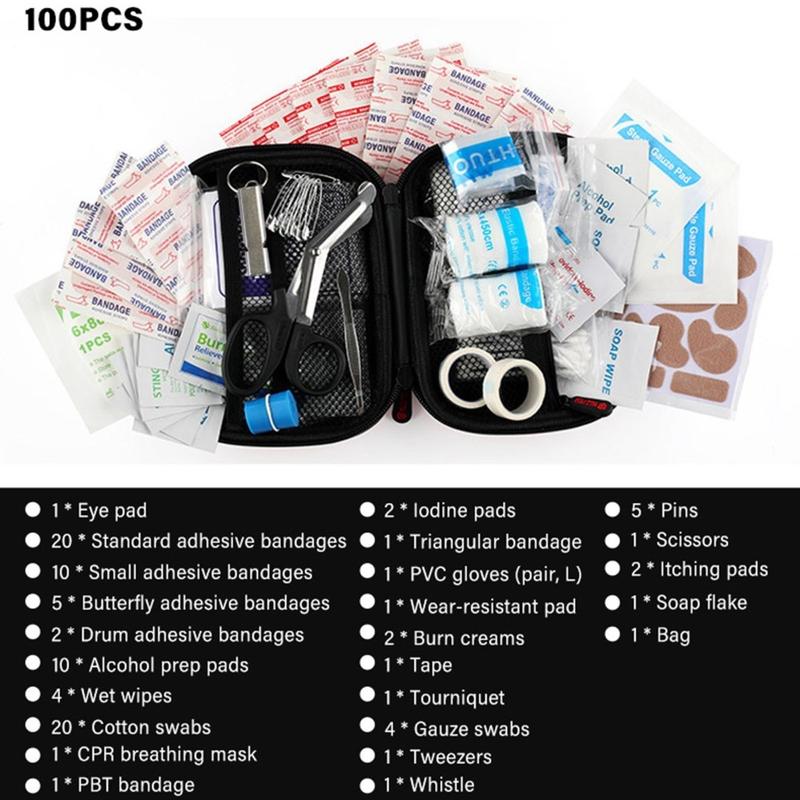 100-in-1 EHBO-set voor noodgevallen met waterdichte tas voor kamperen, reizen en thuis