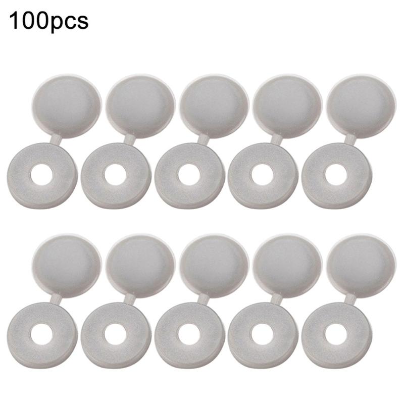 100 stuks. Scharnierende plastic schroefdeksels - 13 mm buitendiameter, 5 mm gat, Snap-On schroefdeksels voor zelftappende schroeven