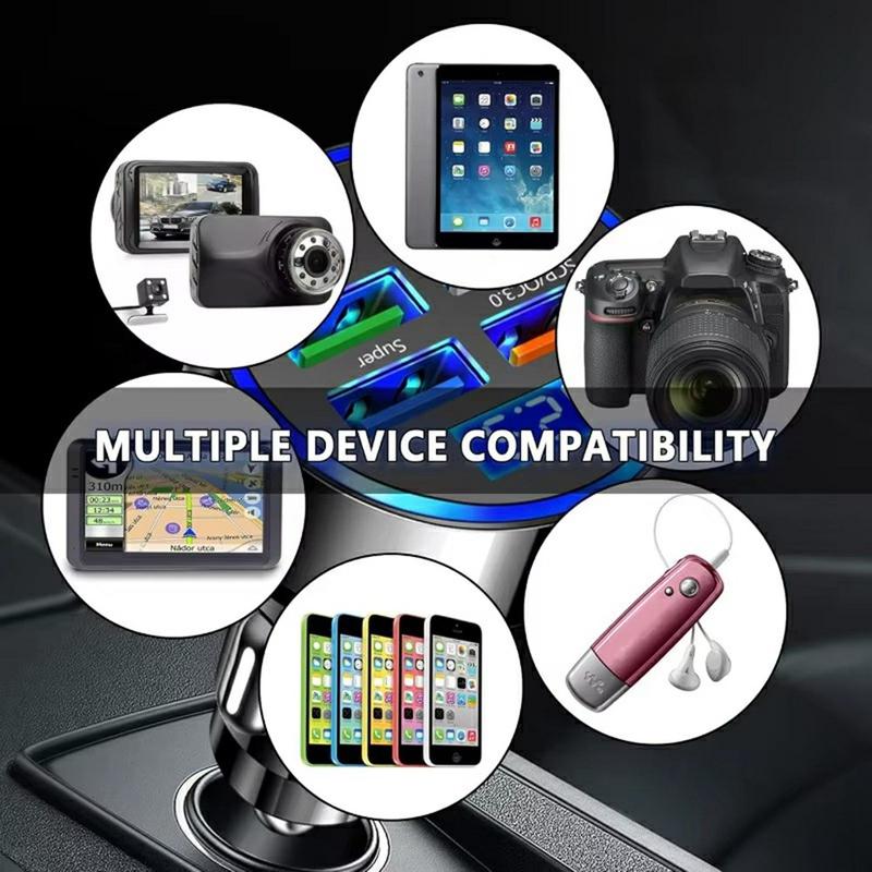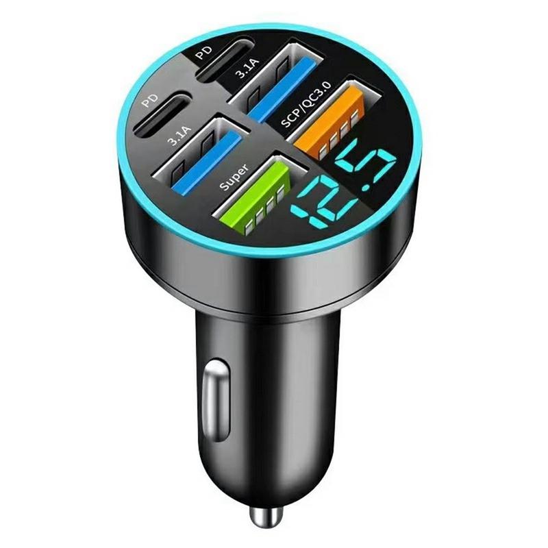 De 100W 6-poorts autolader is gemaakt om al je apparaten onderweg van stroom te voorzien. Met een totale output van maximaal 100W is hij krachtig genoeg om laptops, tablets en smartphones tegelijk op te laden, waardoor het de perfecte accessoire is voor moderne bestuurders.