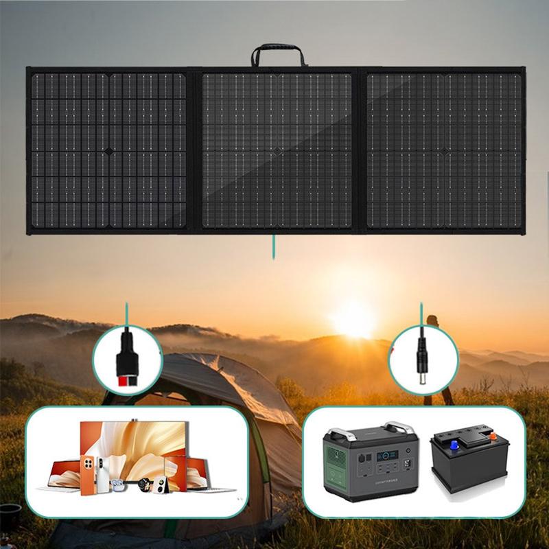 De draagbare zonnepaneellader van 100W is ontworpen voor outdooravonturen, reizen en noodstroomvoorziening. Hij is gebouwd met zeer efficiënte monokristallijne siliciumzonnecellen en levert betrouwbare zonne-energie, terwijl hij lichtgewicht en gemakkelijk te vervoeren blijft. Dankzij het driedubbele ontwerp kan het paneel worden uitgeklapt tot een groot oplaadoppervlak en compact worden opgevouwen voor opslag. Met meerdere uitgangsinterfaces, waaronder USB, USB-C en DC, ondersteunt het het opladen van smartphones, tablets, camera's, drones en draagbare energiecentrales. De IP65 water- en stofdichte constructie zorgt voor betrouwbare prestaties in wisselende buitenomstandigheden.