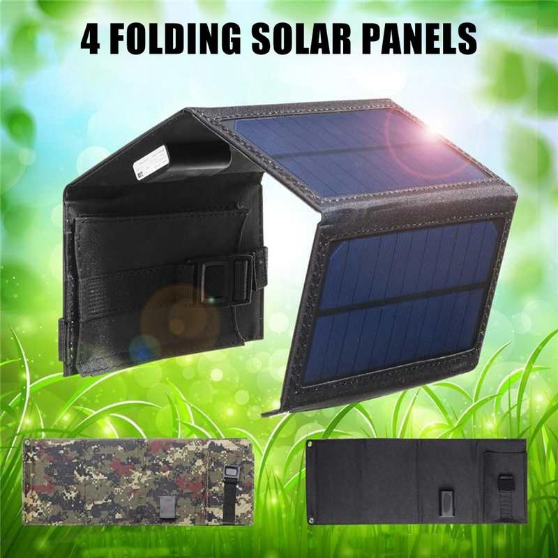 10W opvouwbare USB-zonnelader/powerbank met 4 panelen - draagbare zonne-acculader voor buitengebruik voor telefoons en noodgevallen