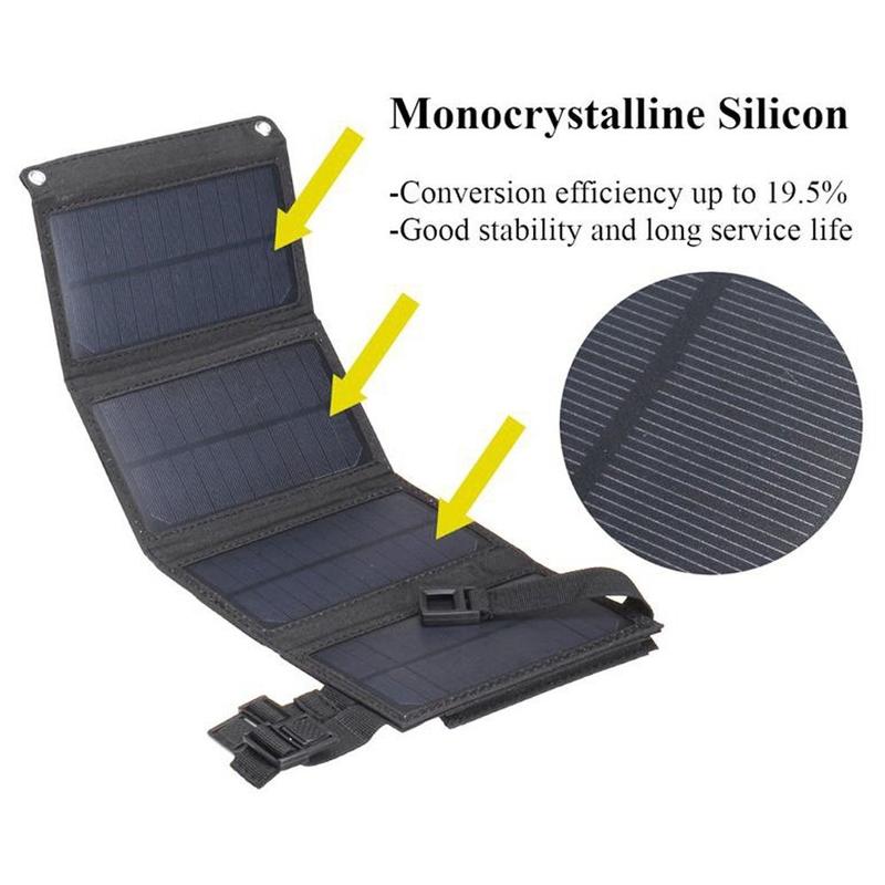 Hij is gemaakt van duurzame, waterdichte materialen en is bestand tegen echte buitenomstandigheden. Met twee sterke karabijnhaken kunt u hem aan een rugzak of tent hangen, zodat de panelen naar de zon gericht blijven terwijl u zich verplaatst. Een intelligente IC-chip zorgt voor extra veiligheid door bescherming te bieden tegen overbelasting, overontlading, overstroom en kortsluiting, waardoor het opladen onderweg betrouwbaarder wordt.