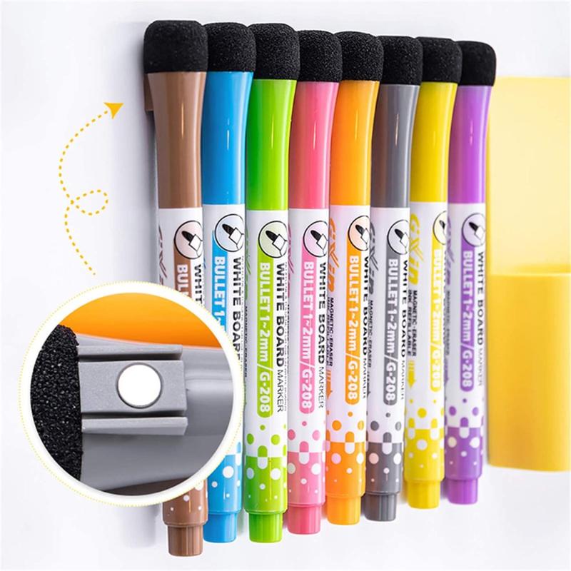 Brede toepassing: 8 heldere kleuren droog uitwisbare markers kunnen worden toegepast op gladde oppervlakken, zoals whiteboard, porselein, plastic, glas enzovoort, handig voor school en kantoor