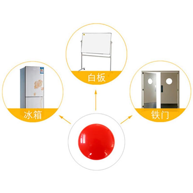 - In tegenstelling tot zelfklevende notities laten magnetische knoppen geen resten achter, waardoor de levensduur van koelkastcoatings en whiteboardoppervlakken wordt verlengd.