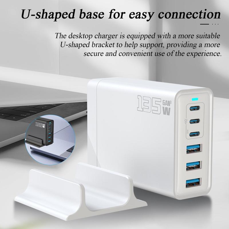 135W GaN Desktop Charger / 6-poorts snellaadstation - 3x USB-C, 3x USB-A