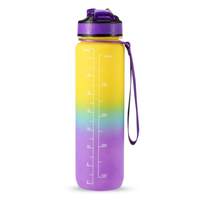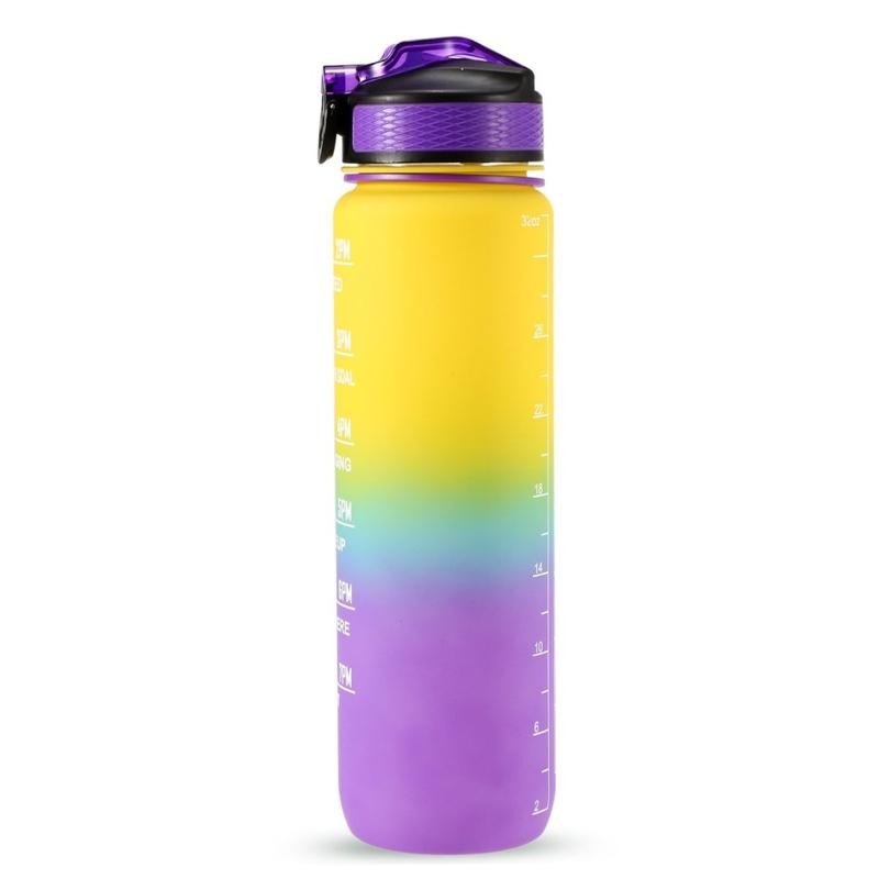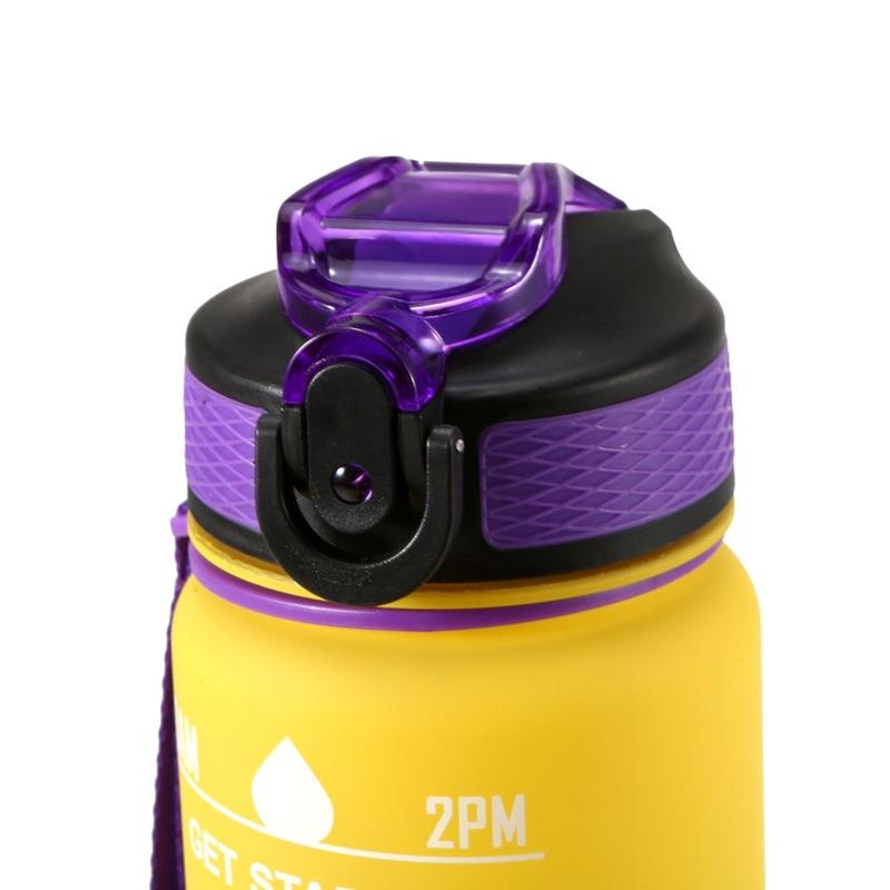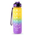 1L Sport Waterfles met Tijdsaanduiding Waterkan Lekvrije Drink Waterkoker voor Kantoor School Kamperen (BPA Vrij) - Geel/Paars