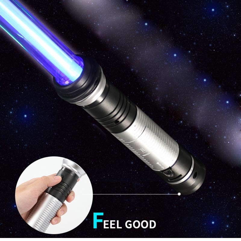 Doorschijnende LED-veilige bladen met gedetailleerde designhandgrepen. realistische melkwegstrijders spelen