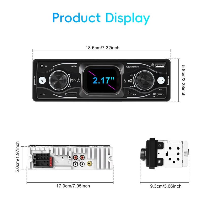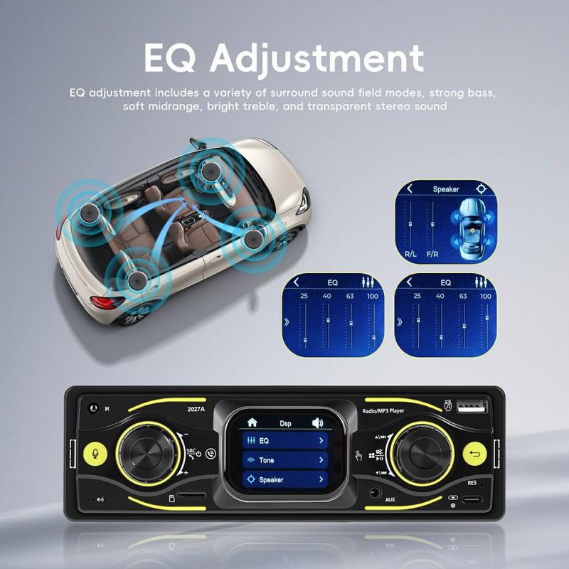 Geef uw dagelijkse rit een upgrade met de 2027A Single DIN-multimediaspeler voor in de auto, ontworpen voor eenvoudige bediening, beter geluid en moderne connectiviteit. Het 2.17-inch TFT-touchscreen werkt samen met fysieke knoppen, zodat u snel muziek en instellingen kunt aanpassen terwijl u zich op de weg blijft concentreren. Stream audio draadloos via Bluetooth 5.0, neem handsfree gesprekken aan en geniet van flexibele ingangen zoals USB-C, USB, TF-kaart en AUX voor een opstelling die bij elke reis past.