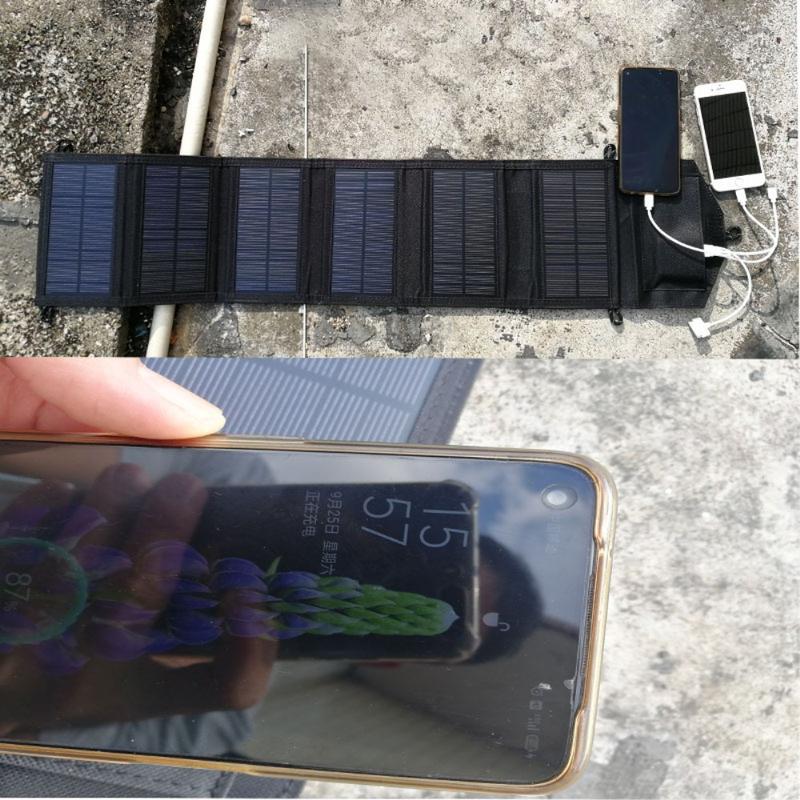 - 20W opvouwbare zonnelader met 6 panelen voor een groter oppervlak om zonlicht op te vangen