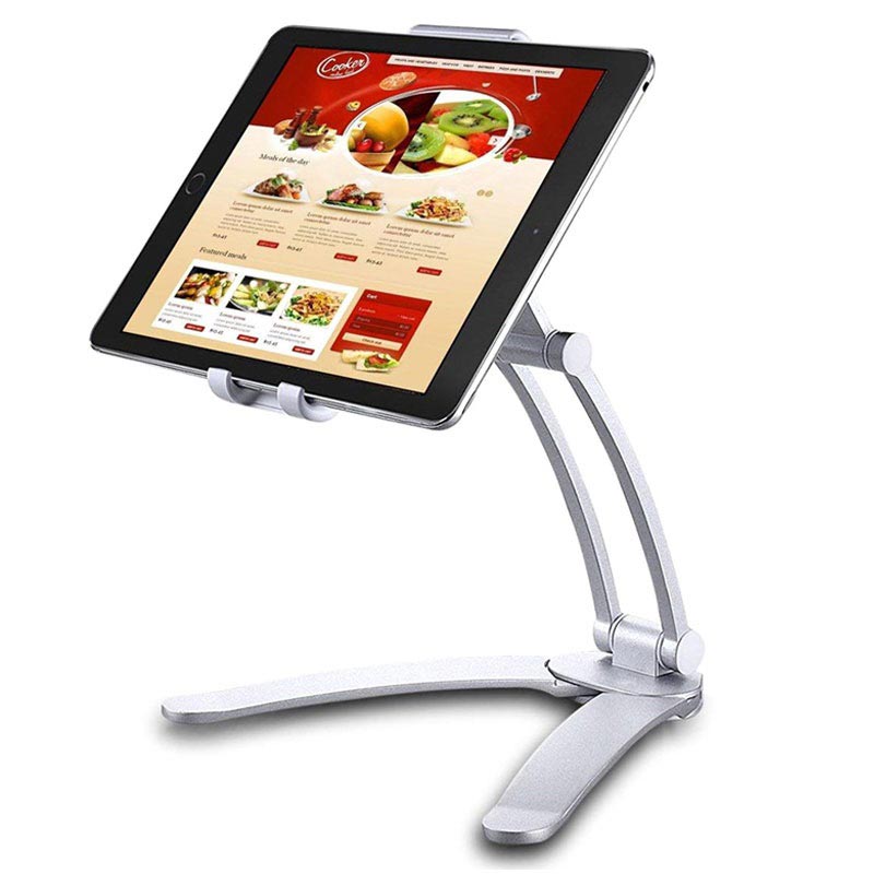 Bekijk je favoriete YouTube-kanalen, series, films of recepten terwijl je kookt zonder je tablet te bevlekken, plaats hem gewoon op het bureau of hang hem aan de muur of in de keuken. De meegeleverde zelfklevende muurbeugel kan ook met twee schroeven worden bevestigd. Deze tablethouder heeft twee poten die hem stevig op zijn plaats houden.