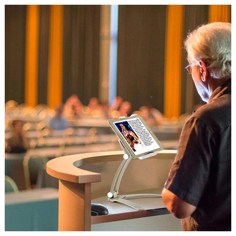 - Een 2-in-1 ontwerp: bureaubladhouder, muurbevestiging voor elke tablet met een breedte van 12,5 tot 19 cm
