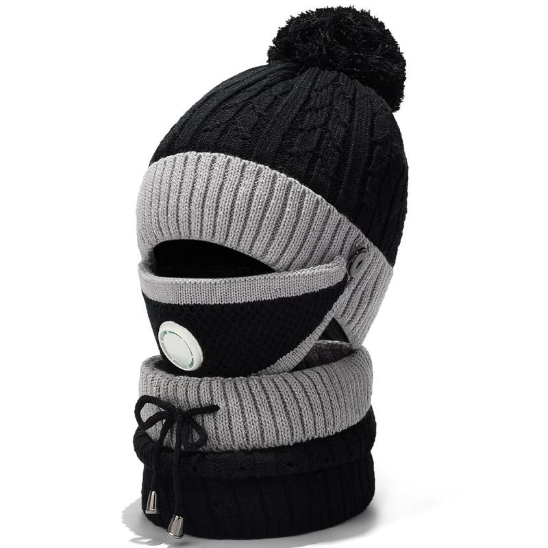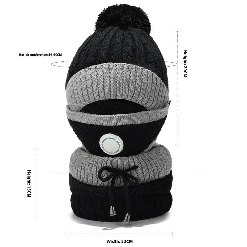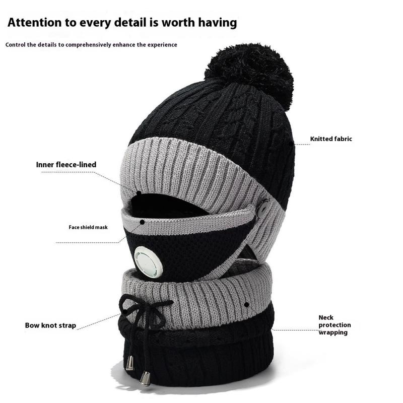 3-Delige Winter Windproof Knit Beanie muts, Gezichtsmasker en Nekwarmer - fleece gevoerde koud weer beschermset