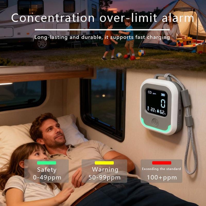 Blijf veiliger thuis en onderweg met deze 3-in-1 draagbare koolmonoxidemelder, die CO-concentratiebewaking, temperatuur- en vochtigheidsmetingen combineert in één compact apparaat. Ontworpen voor flexibel gebruik in kampeeruitrusting, campers, hutten, werkplaatsen en alledaagse binnenruimtes, helpt het u gevaarlijke koolmonoxidegehaltes vroegtijdig op te sporen en op de hoogte te blijven van de omgeving. Een ingebouwd slim alarm waarschuwt u wanneer CO een gevaarlijk niveau bereikt, terwijl het oplaadbare USB-C-ontwerp en de 1100 mAh Li-polymeerbatterij het apparaat praktisch maken voor reizen en noodpakketten. Met een meetbereik tot 1000 ppm en een duidelijk, draagbaar ontwerp is het een eenvoudige veiligheidsupgrade voor iedereen die tijd doorbrengt in gesloten of brandstofverbrandende omgevingen.
