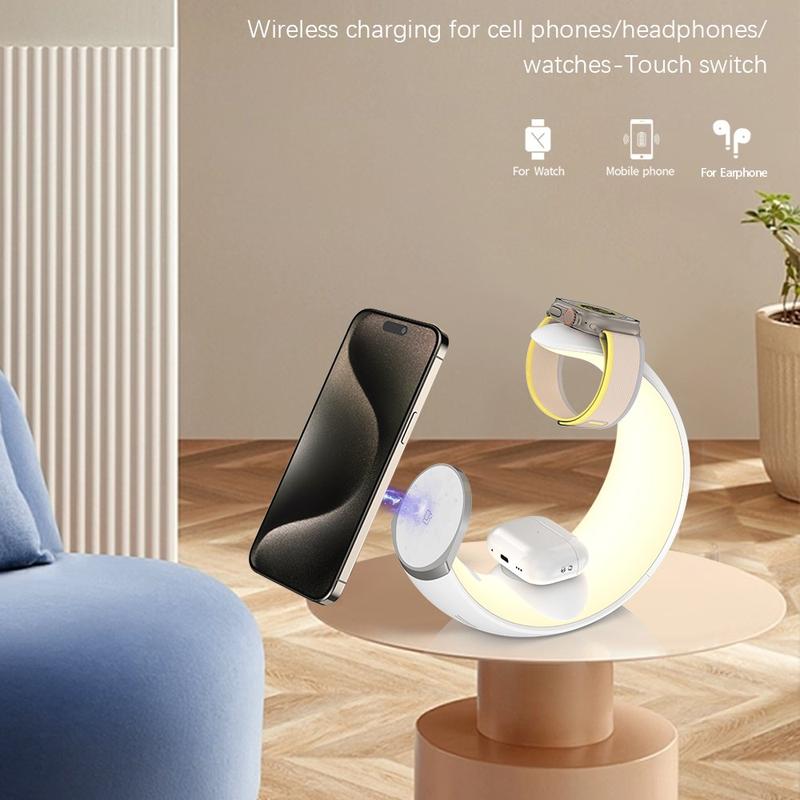 3-in-1 magnetische draadloze oplader met nachtlampje voor smartphone, smartwatch, koptelefoon - 15W