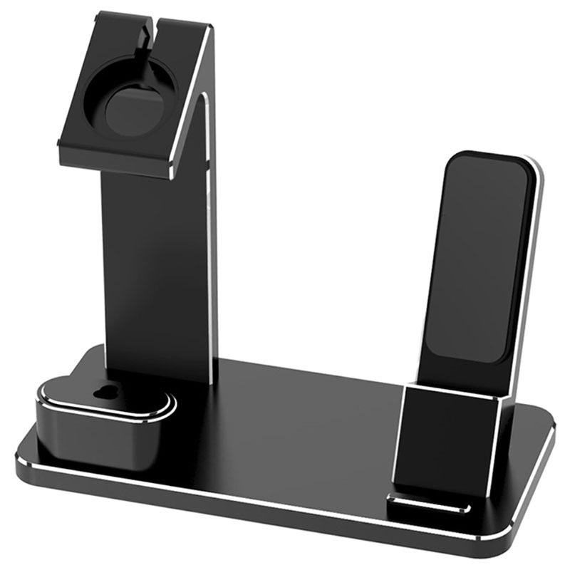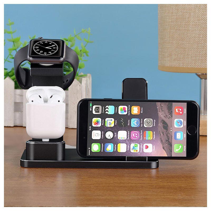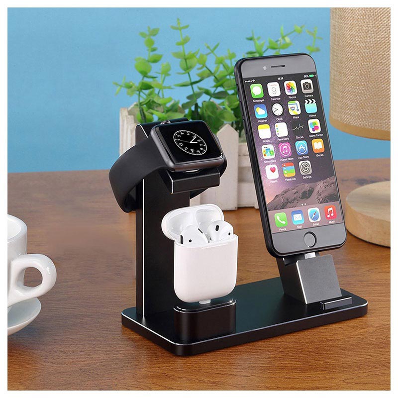 Met deze handige oplaadstandaard kunt u uw iPhone, Apple Watch en AirPods op dezelfde plek opbergen. Je kunt ze allemaal opladen met je laders en kabels. Alle apparaten worden in een perfecte kijkpositie gehouden.