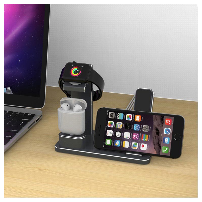 - Handige oplaadstandaard voor het opslaan van uw Apple Watch, AirPods en iPhone