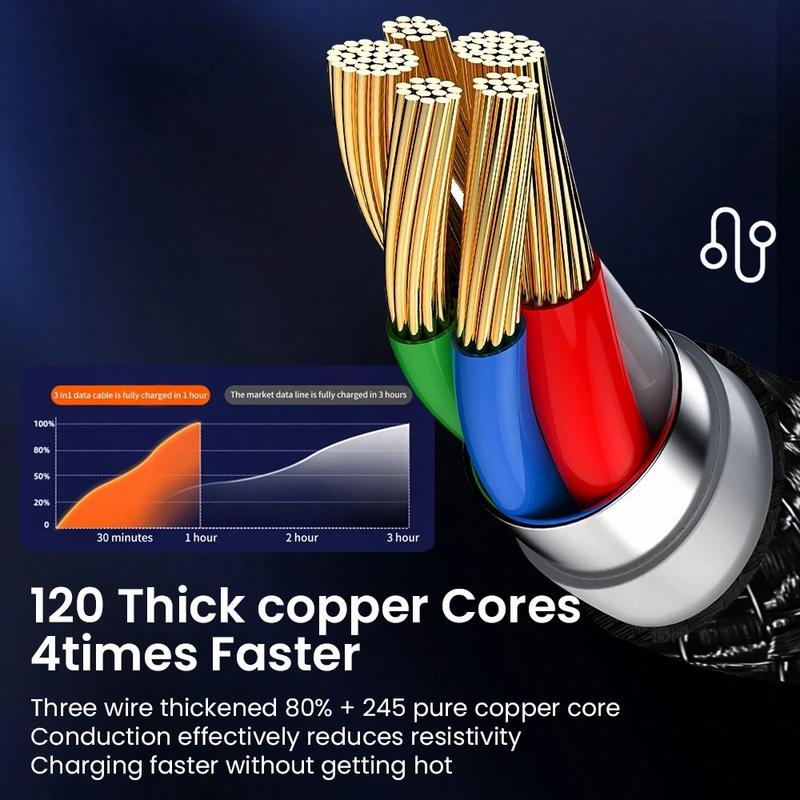 Vervangt drie afzonderlijke kabels door één sterke, nylon gevlochten kabel van 1.2m. De Type-C interface ondersteunt snel opladen tot 5 A PD 100 W, de E-marker helpt stroom veilig en efficiënt te beheren en de 20.000+ buigweerstand is gemaakt voor dagelijks gebruik - uitstekende waarde voor opladen en gegevens met minder kabels om mee te nemen.
