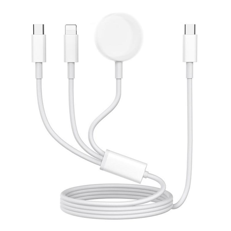 De 3-in-1 oplaadkabel is ontworpen om het dagelijks opladen te vereenvoudigen door meerdere functies te combineren in één praktische kabel. De kabel ondersteunt draadloos opladen voor Apple Watch, waardoor het een ideale oplossing is voor bureaus, nachtkastjes en op reis.