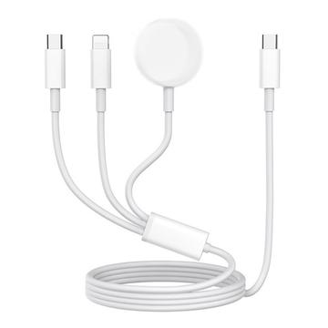 3-in-1 USB-C oplaadkabel naar USB-C, Lightning, Apple Watch draadloze oplader - 1m - Wit