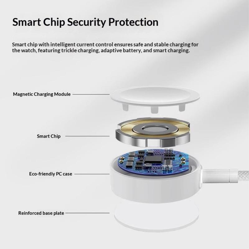 Het magnetische oplaadontwerp zorgt voor een moeiteloze uitlijning met compatibele apparaten. Plaats je Apple Watch gewoon op de oplader en hij klikt vast in de juiste positie, voor een stabiel contact en efficiënte stroomoverdracht.