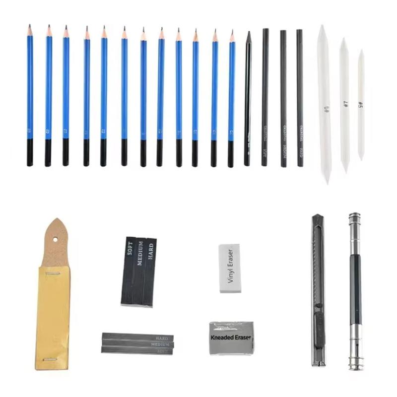 - Compleet artistiek assortiment - Bevat een verscheidenheid aan grafietpotloden, houtskoolstiften, menggereedschappen en meer voor verschillende artistieke technieken.