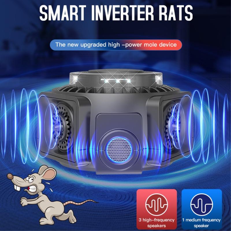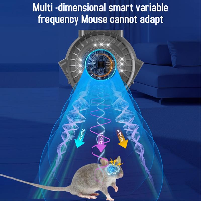 Geavanceerde technologie: Gebruikt moderne technologie om ultrasone en drukgolven uit te zenden, samen met een nachtelijk knipperend lichteffect, dat het zenuwstelsel en het gehoorsysteem van knaagdieren en ongedierte aanpakt, wat ongemak veroorzaakt en hun aanwezigheid afschrikt.