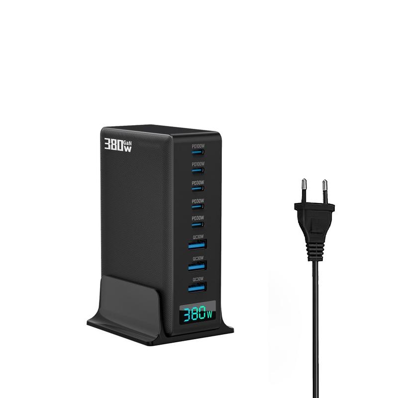 380W GaN Desktop Laadstation met Digitale Vermogensweergave - 8 Poorten (5x USB-C + 3x USB-A), tot 100W USB-C Snellader