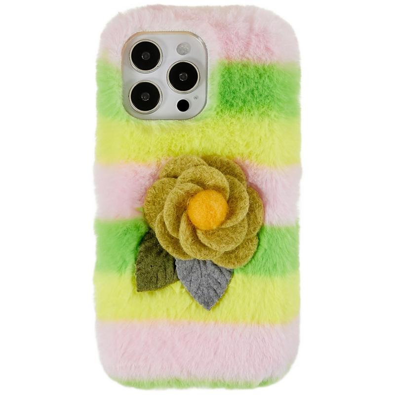 Winter Furry Phone Case voor iPhone 14 Pro Shockproof Cover Beschermende Shell met 3D Pluche Pop