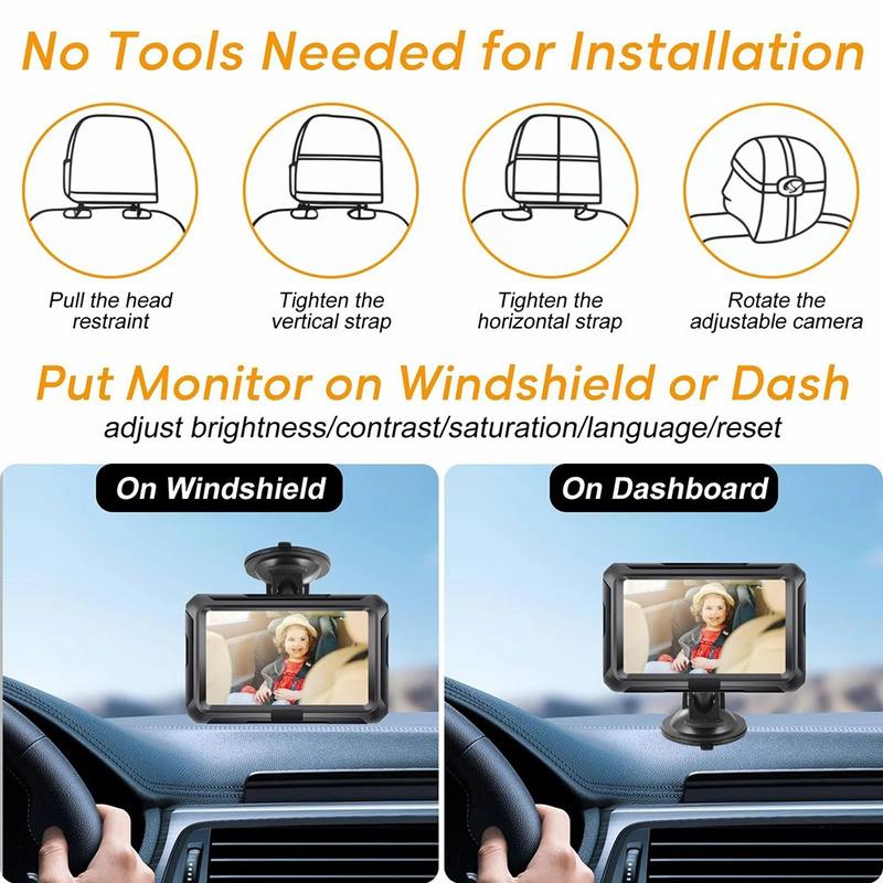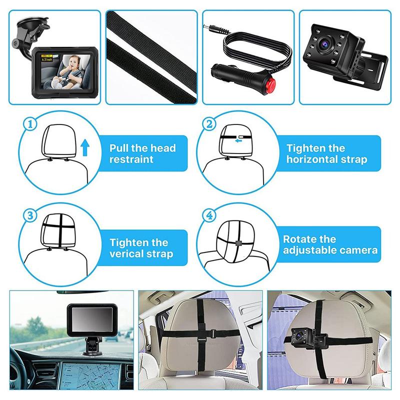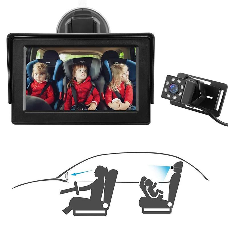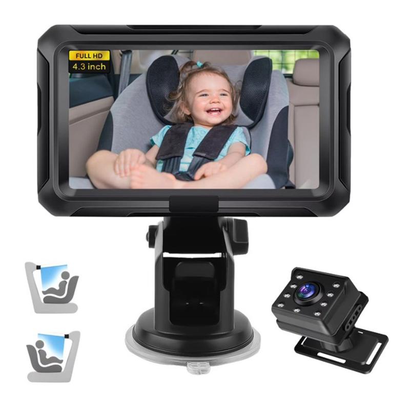 4,3-inch HD 1080P babyfoon voor in de auto - brede nachtzichtcamera met 360 rotatie voor veiligheid achterin