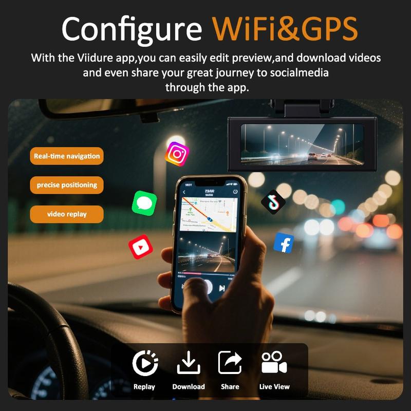 Dankzij de ingebouwde Wi-Fi kun je de dashcam rechtstreeks aansluiten op je smartphone om videobestanden direct af te spelen, te downloaden of te delen - je hoeft de geheugenkaart niet te verwijderen. De geïntegreerde GPS-module volgt rijroutes en locaties en levert nauwkeurige kaartgegevens voor reisdocumentatie of verificatie van ongevallen. ADAS-bestuurdersassistentie voegt een extra veiligheidslaag toe met intelligente waarschuwingen die helpen om voorzichtiger te rijden.