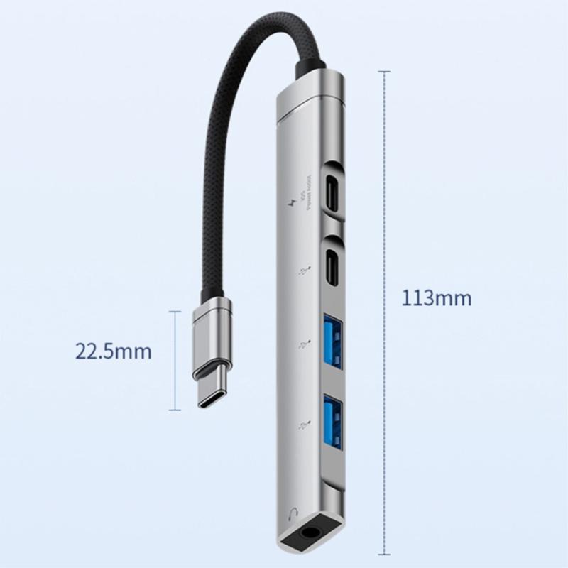 Upgrade de connectiviteit van uw laptop of tablet met deze lichtgewicht 5-in-1 Type-C Hub, ontworpen om essentiële poorten te combineren in één slanke accessoire. De hub is gemaakt van aluminiumlegering en TPE-materialen en verwerkt op efficiënte wijze zowel gegevensoverdracht als het opladen van apparaten, terwijl de warmte uitstekend wordt afgevoerd. Of u nu externe opslag, een muis of een hoofdtelefoon moet aansluiten, deze hub zorgt voor betrouwbare, plug-and-play prestaties voor verhoogde productiviteit onderweg.