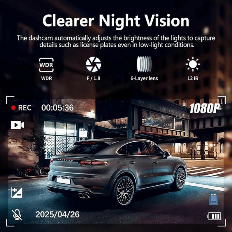 Krijg betrouwbaar, veelzijdig rijbewijs met dit 5-kanaals dashcam-systeem dat is ontworpen voor volledige dekking op de weg en tijdens het parkeren. Met een multi-angle opstelling die tegelijkertijd beelden van voren, links, rechts, achter en binnenin registreert, helpt het blinde vlekken te verminderen en momenten vast te leggen die camera's met één lens vaak missen. Het ingebouwde 3,0-inch (7,6 cm) scherm ondersteunt een handige 5-voudige preview, zodat u in één oogopslag elke hoek kunt bekijken. Overdag of 's nachts, de grote F2.0-diafragmaopening en starlight-stijl prestaties bij weinig licht werken samen met 8 krachtige 850 nm infrarood-LED's om beelden helder te houden wanneer het zicht slechter wordt. Voeg wifi toe voor snelle weergave op uw telefoon, loop-opname voor zorgeloze opslag en een G-sensor die belangrijke clips automatisch vergrendelt. Deze dashcam is gemaakt voor dagelijkse bestuurders, rideshare-gebruik en wagenparkvoertuigen die betrouwbare documentatie nodig hebben.