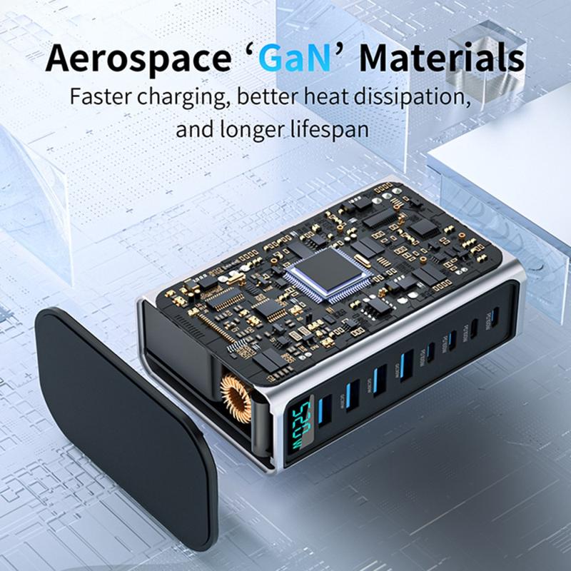 Laad je hele set-up op via één krachtige hub. Dit 520W GaN 5.0 desktop oplaadstation is gemaakt voor intensief gebruik van meerdere apparaten en biedt 8 poorten (4x USB-C + 4x USB-A) en een digitale real-time vermogensweergave zodat je de uitvoer in één oogopslag kunt controleren. Het is ideaal voor het voeden van laptops, tablets, telefoons, koptelefoons, gamecontrollers, camera's en powerbanks - tegelijkertijd - terwijl je je werkruimte netjes houdt en de kabelchaos onder controle. Dankzij de AI-temperatuurbewaking en meerlaagse veiligheidsvoorzieningen kun je snel en stabiel opladen zonder je gemoedsrust te verliezen.