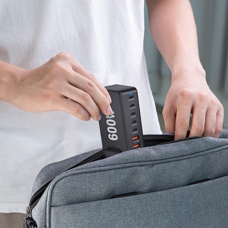 Voed je hele set-up met één compacte hub. Dit 600W GaN desktop oplaadstation is gemaakt voor drukke bureaus, gedeelde huishoudens en reispakketten met veel technologie, zodat je tot 8 apparaten tegelijk kunt opladen. Met 5 USB-C poorten en 3 USB-A poorten is het klaar voor alles van krachtige USB-C laptops tot telefoons, tablets, oordopjes en powerbanks. Ondersteuning voor PD3.1 en QC3.0 zorgt voor snel opladen op compatibele apparaten, terwijl de intelligente stroomverdeling de uitvoer automatisch aanpast aan wat is aangesloten. Meerlaagse veiligheidsbescherming helpt het opladen stabiel en zorgeloos te houden, zelfs als er meerdere apparaten zijn aangesloten.