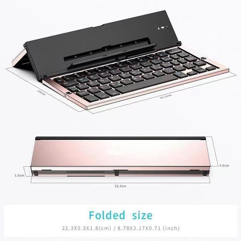 608 Drievoudig opvouwbaar draadloos toetsenbord met dubbele kanaalschakelaar en standaard - aluminiumlegering