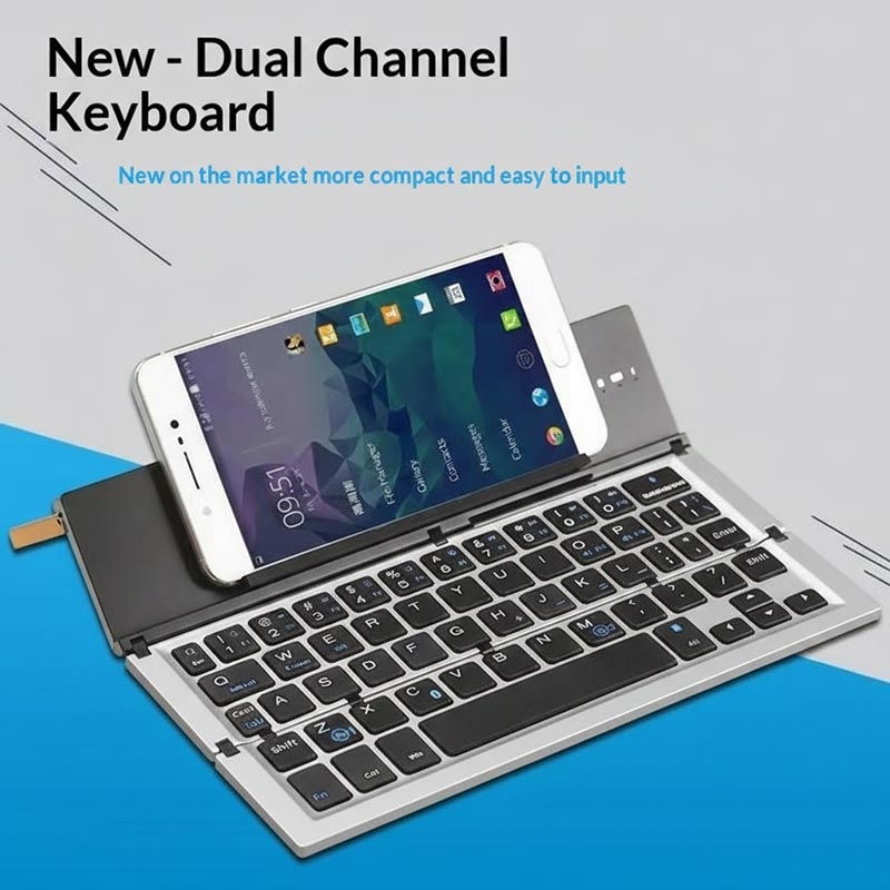 • 608 Drievoudig opvouwbaar draadloos toetsenbord met dubbele kanaalschakelaar en standaard - aluminiumlegering