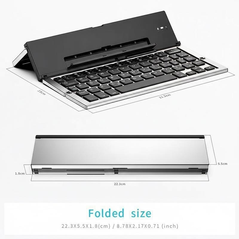 Het 608-toetsenbord combineert hoogwaardige materialen met slimme functionaliteit. De aluminium constructie biedt een steviger en professioneler gevoel dan standaard plastic toetsenborden, terwijl de dual-channelverbinding tijd bespaart bij het wisselen tussen apparaten. Het drievoudig opvouwbare ontwerp en de ingebouwde standaard maken het een praktische keuze voor gebruikers die efficiëntie en draagbaarheid belangrijk vinden.