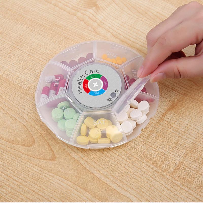 - 7 afgesloten compartimenten - met één klik draait u naar de volgende dosis; binnendeksels houden verschillende tabletten vers en gescheiden.