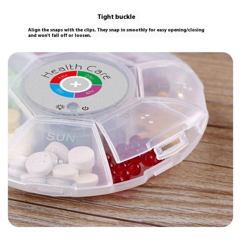 7-daagse slimme pillenhouder - 5-alarm LED-herinnering, braille-markeringen & waterdicht klikslot