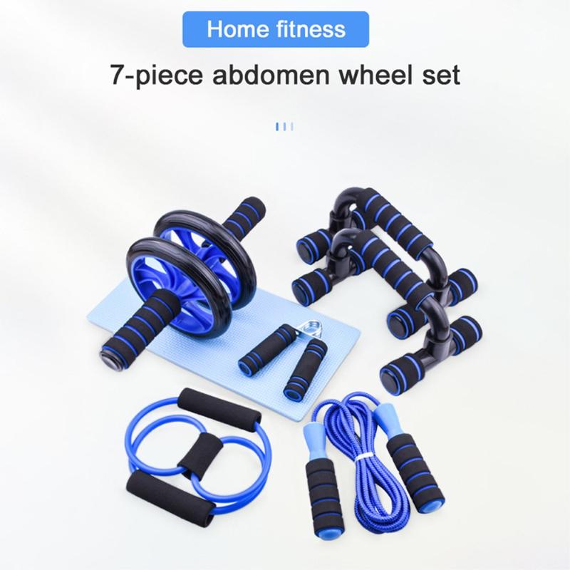 7-delige fitnessset voor thuis - buikspierroller, push-upstangen, springtouw, handgreep en borstspiertrainer