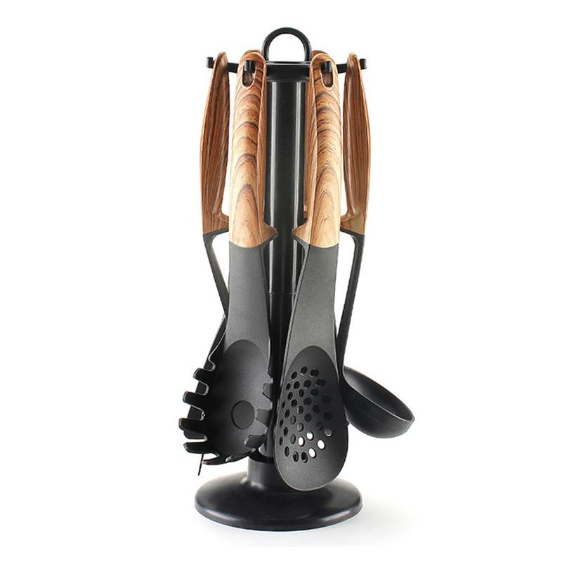Upgrade je keukenbenodigdheden met deze 7-delige collectie hittebestendige kookgereedschappen, ontworpen voor dagelijks gebruik en moeiteloos koken. Met duurzame nylon koppen, ergonomische handgrepen met houttextuur en een handig opbergrek biedt deze set stijl, comfort en functionaliteit voor elke keuken.