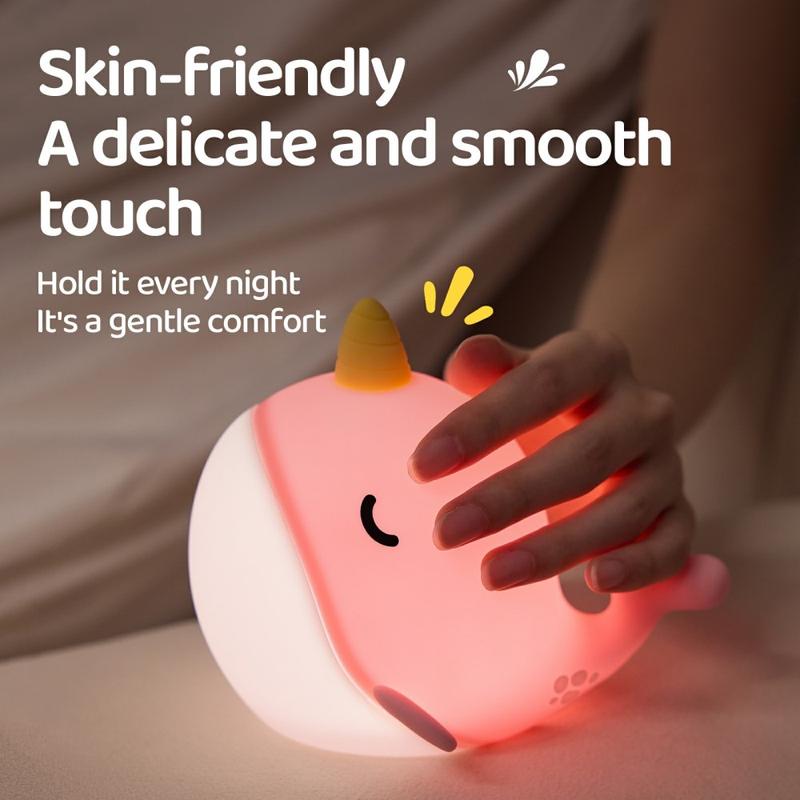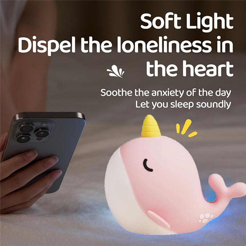 A044 Narwal Siliconen Nachtlampje - Kraanbediening, Oplaadbaar via USB-C & Zachte Ambient Gloed