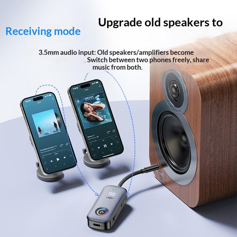 De A6 Pro werkt zowel als Bluetooth-ontvanger als -zender, waardoor u twee smartphones of twee Bluetooth-hoofdtelefoons tegelijkertijd kunt aansluiten. Ideaal voor het delen van muziek of het upgraden van niet-Bluetooth-audiosystemen in auto's.